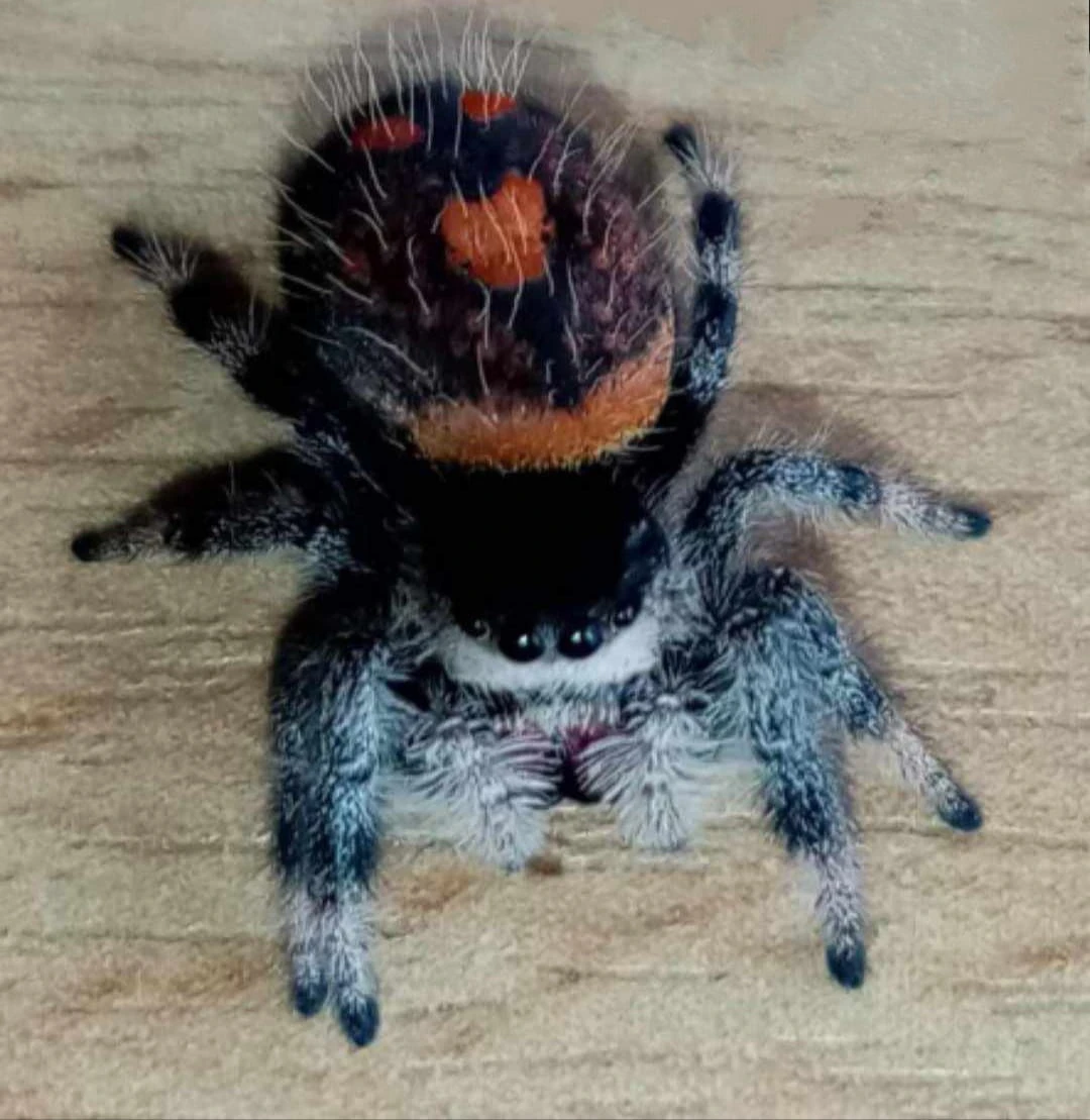Eine schöne Farbvariante der beliebten Springspinne Phidippus regius. Sie erreichen eine Größe von etwa 2 cm. Sie jagen gerne und aktiv, indem sie auf ihre Beute springen.