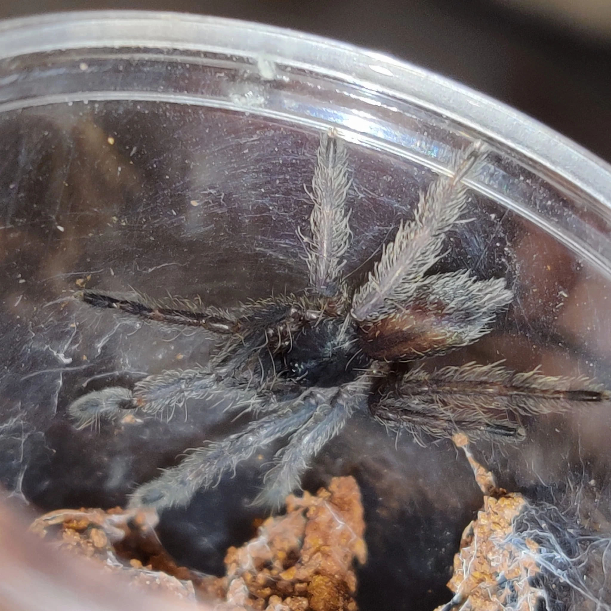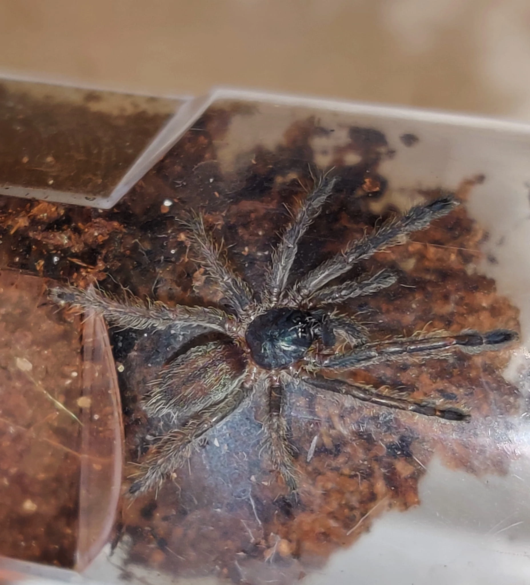 Use a substrate that maintains high humidity, e.g., coconut fiber or leaf compost. Regular misting is essential, but avoid overwatering, which can threaten the spider's health.