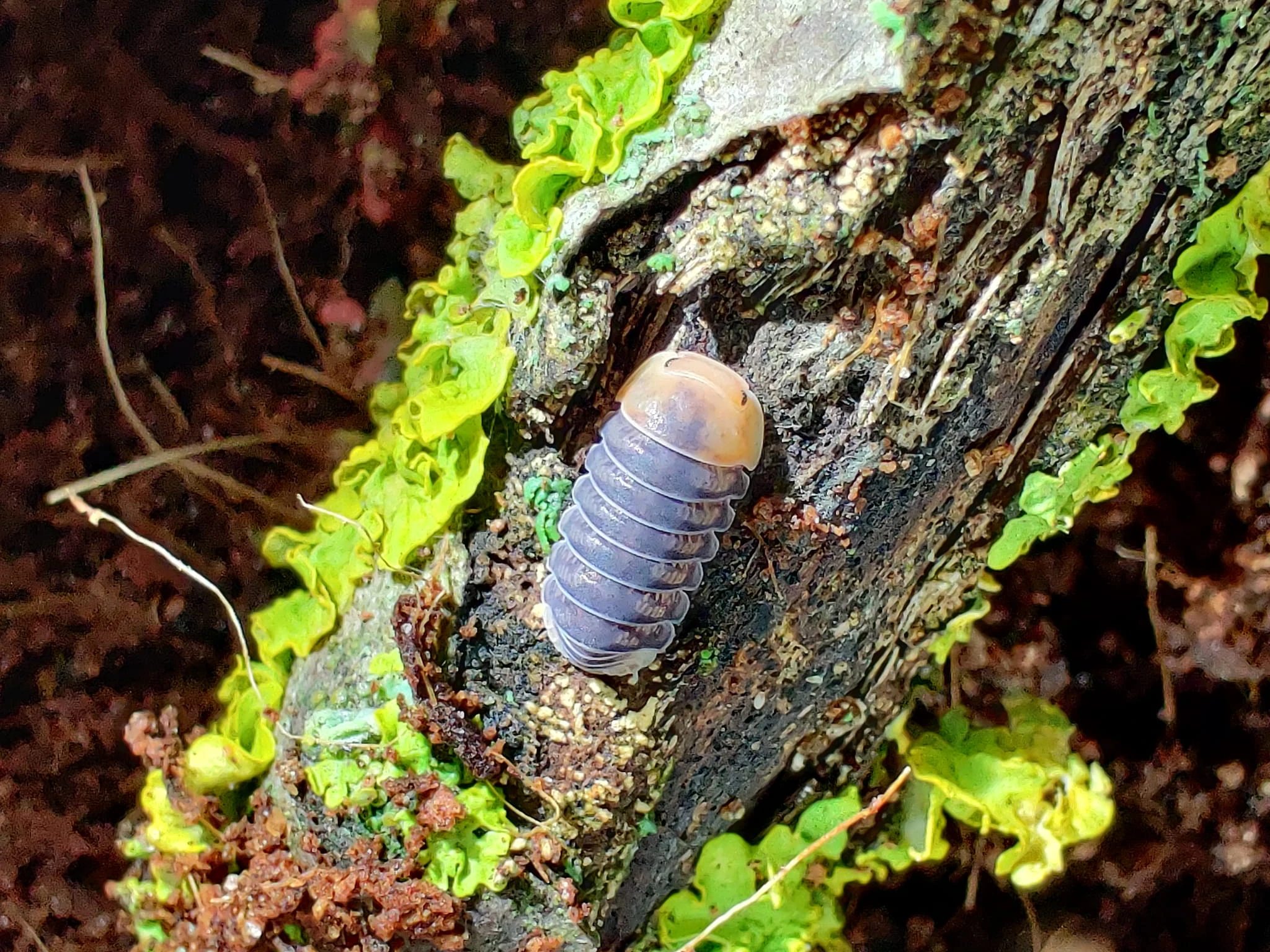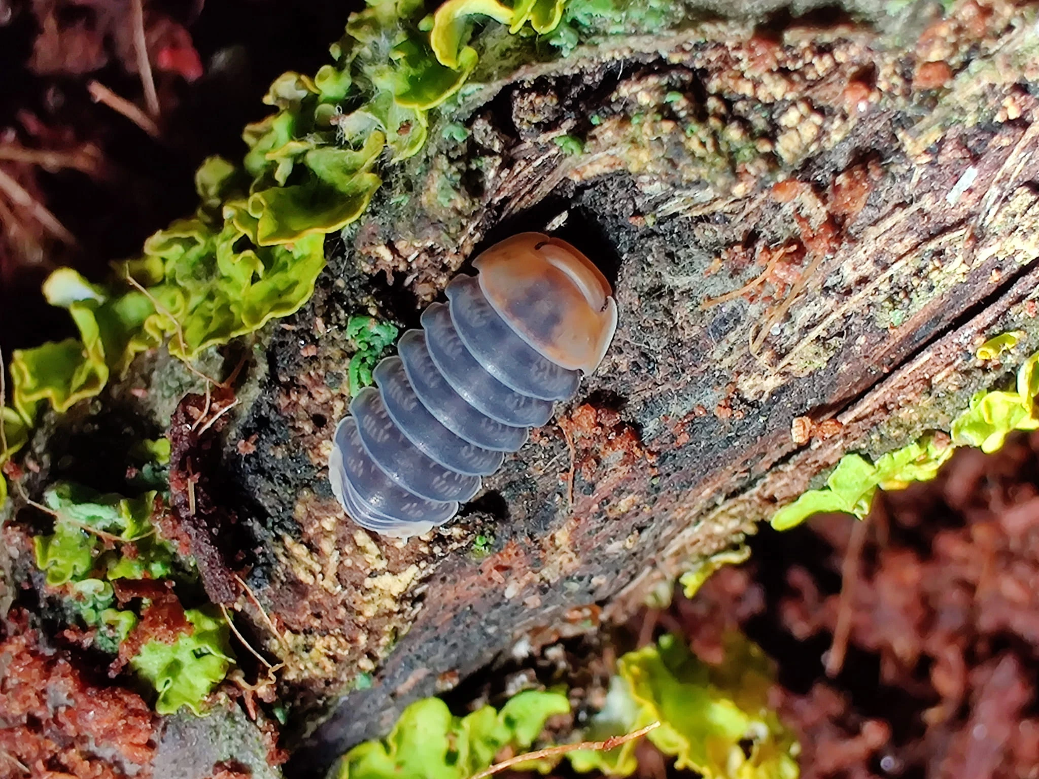 Une morphologie bien colorée, avec un corps bleu foncé orné d'un motif, et une tête orange. Température supérieure à 23°C, avec une préférence pour un environnement humide avec quelques zones sèches.
