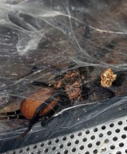 - Humidité élevée – vaporisation régulière du substrat (l'araignée est sensible au dessèchement).